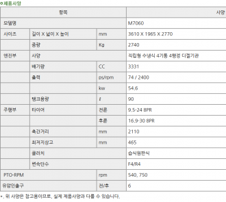 구보다/트랙터/72마력/M7060/2017년식