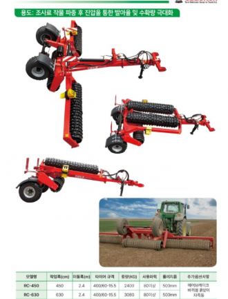 모델명: RC-630 (작업폭 630cm, 폴딩 시 이동폭 2.4m, 중량 3.08 ton) 할인판매가 2700만원
