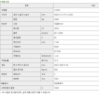 TYM/콤바인/5조식 (산물형)/CX955/2018년식