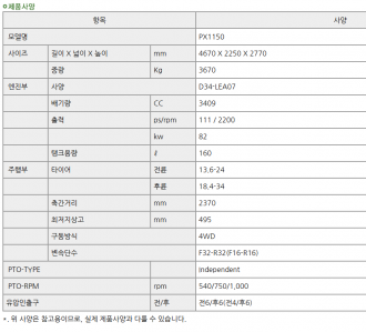 대동/트랙터/110마력/PX1150SC/2018년식