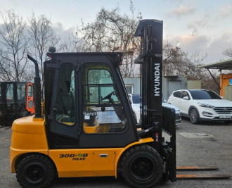 중고지게차 현대 포렉스 30D-9B 디젤 3톤 지게차(하이 3단마스트(6M 인상), 사이드쉬프트, 캐빈, 통타이어, 후방카메라, 안전경보기, 여유 스풀 1개)
