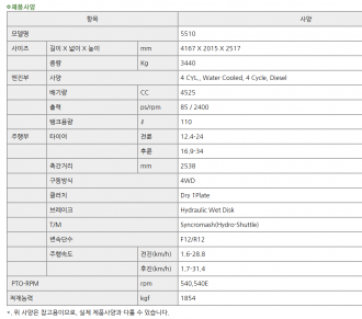 존디어/트랙터/85마력/5510/2002년식