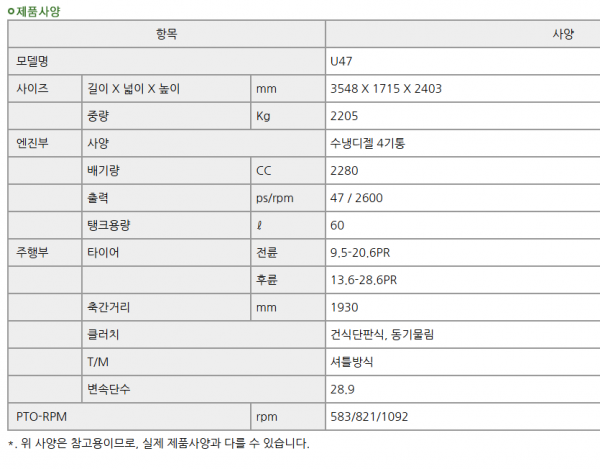 제조사 | LS | 모델명 | U47 | 규격 | 47마력 |