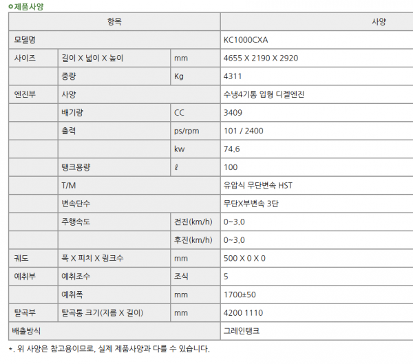 국제/콤바인/5조식 (산물형)/KC1000/2019년식전남 / 장성