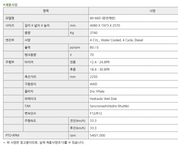| 제조사 | 뉴홀랜드 | 모델명 | 80-66D | 규격 | 80마력 |