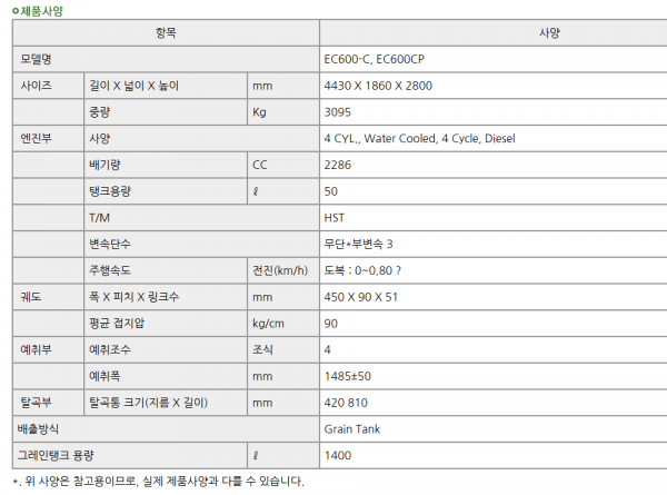 국제/콤바인/4조식/EC600/2005년식전북 / 순창
