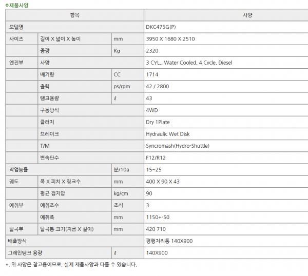 국제/콤바인/3조식/DKC475G/2006년식전북 / 순창