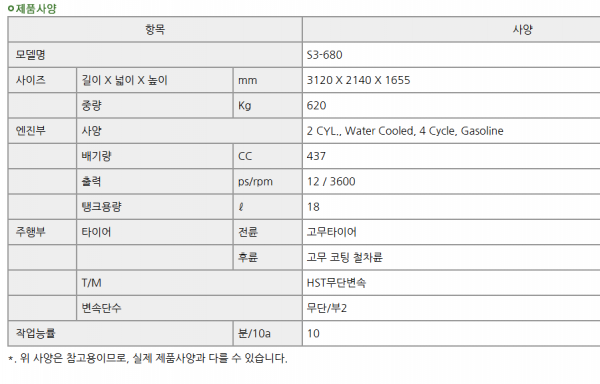 | 제조사 | 대동 | 모델명 | S3-680 | 규격 | 6조식 |