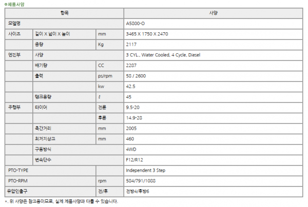 | 제조사 | 국제 | 모델명 | A5800 | 규격 | 50-59hp |