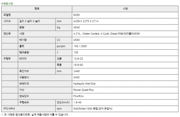 | 제조사 | 존디어 | 모델명 | 6330 | 규격 | 100-109hp |