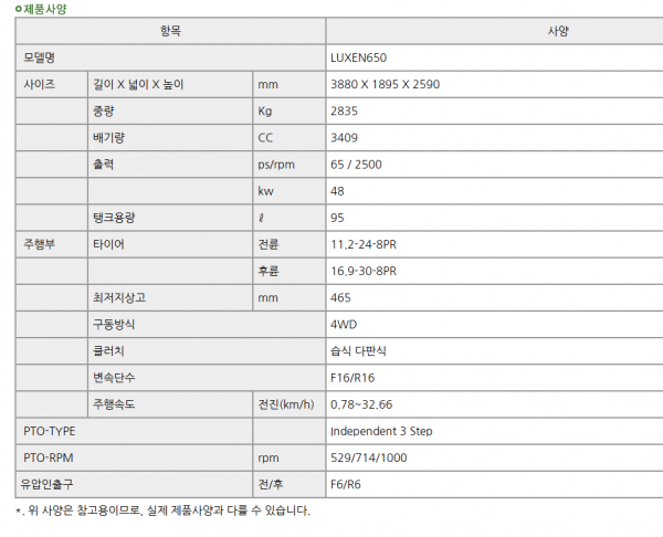 | 제조사 | 국제 | 모델명 | LUXEN65 | 규격 | 65마력 |