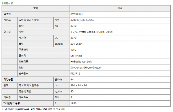 | 제조사 | 얀마 | 모델명 | AW580 | 규격 | 5조식 (산물형) |
