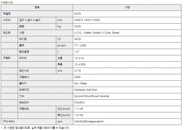 | 제조사 | 존디어 | 모델명 | 5425 | 규격 | 70-79hp |