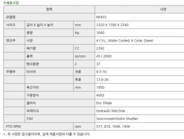 | 제조사 | 국제 | 모델명 | F455 | 규격 | 45마력 |