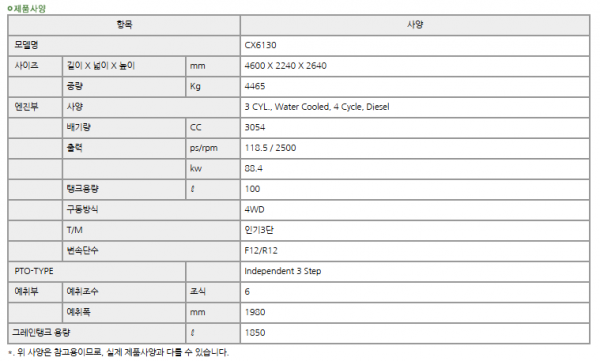 | 제조사 | 동양 | 모델명 | CX6130 | 규격 | 6조식 (산물형) |