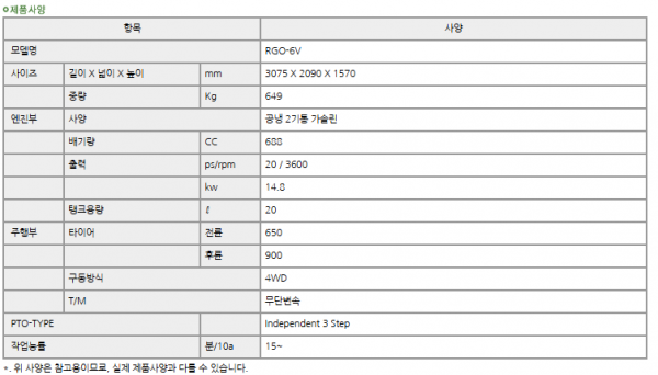 | 제조사 | 국제 | 모델명 | RGO-6 | 규격 | 6조식 승용 |