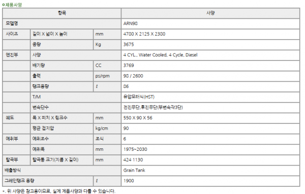 | 제조사 | 구보다 | 모델명 | ARN98 | 규격 | 6조식 (산물형) |