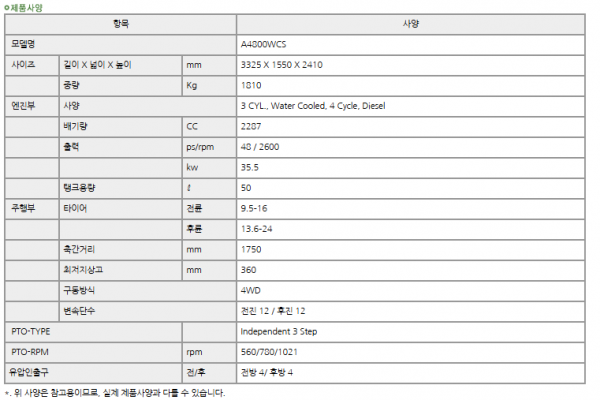 | 제조사 | 국제 | 모델명 | A4800 | 규격 | 40-49hp |