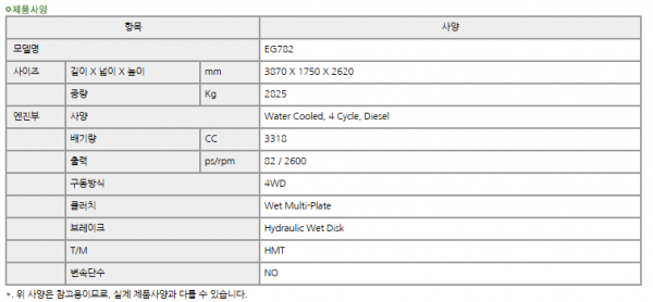 | 제조사 | 얀마 | 모델명 | EG782 | 규격 | 80-89hp |