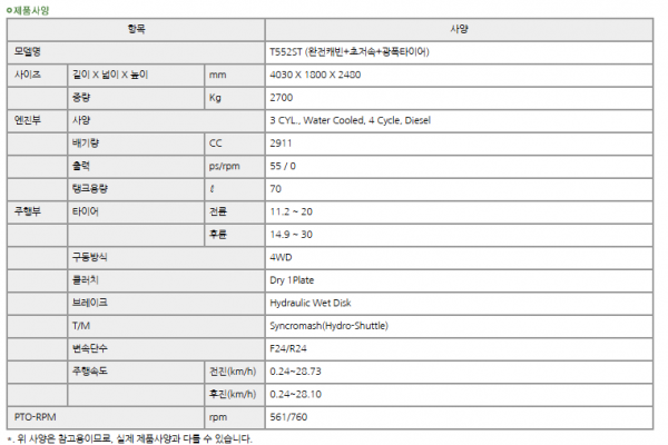 | 제조사 | 동양 | 모델명 | T552 | 규격 | 50-59hp |