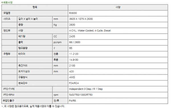 | 제조사 | 대동 | 모델명 | RX630PSC | 규격 | 60-69hp |
