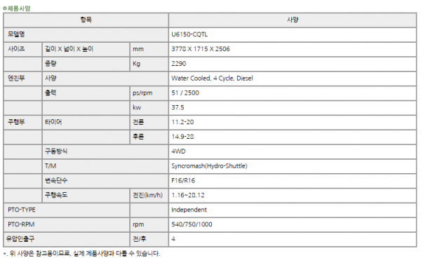 | 제조사 | LS | 모델명 | U6150 | 규격 | 50-59hp |