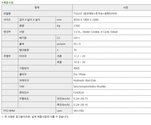 | 제조사 | TYM | 모델명 | T552 | 규격 | 55마력 |