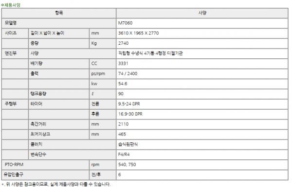 | 제조사 | 구보다 | 모델명 | M7060 | 규격 | 70-79hp |
