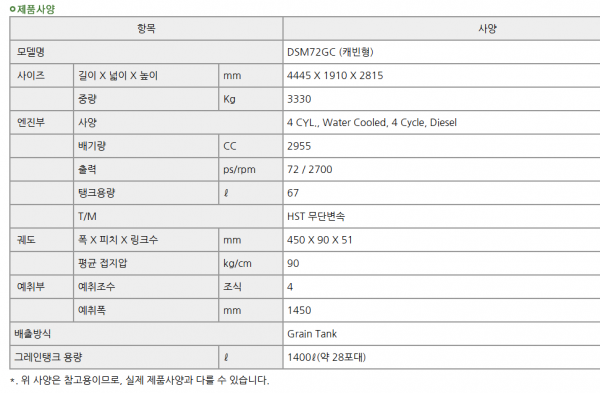 제조사 | 대동 | 모델명 | DSM72G | 규격 | 4조식 |