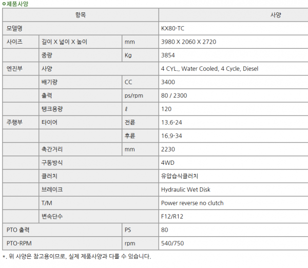 제조사 | 국제 | 모델명 | KX80 | 규격 | 80마력 |
