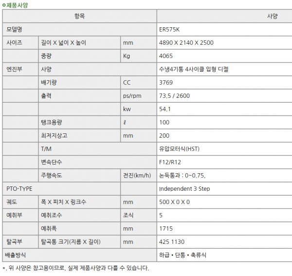 제조사 | 구보다 | 모델명 | ER575K | 규격 | 5조식 (산물형) |