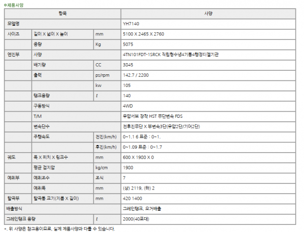 제조사 | 얀마 | 모델명 | YH7140 | 규격 | 기타 |