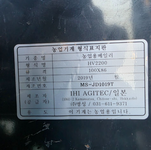 명성/원형베일러/규격문의/HV2200/2019년식경북 / 포항