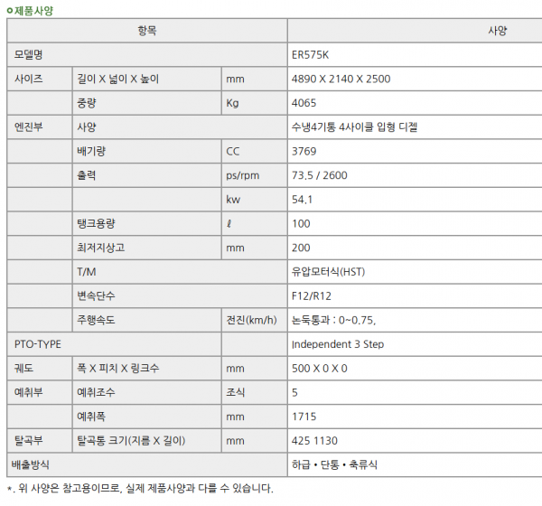제조사 | 구보다 | 모델명 | ER575KC | 규격 | 5조식 (산물형) |