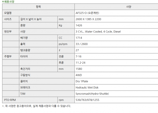 제조사 | 국제 | 모델명 | AF325 | 규격 | 33마력 |