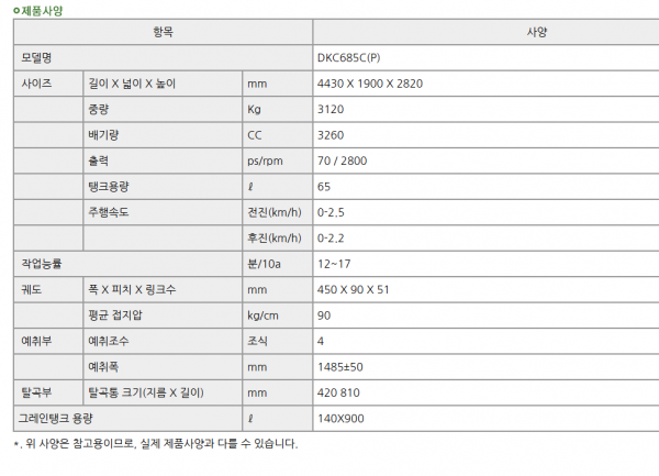 제조사 | 국제 | 모델명 | DKC685 정비점검 완료 | 규격 | 4조식 |