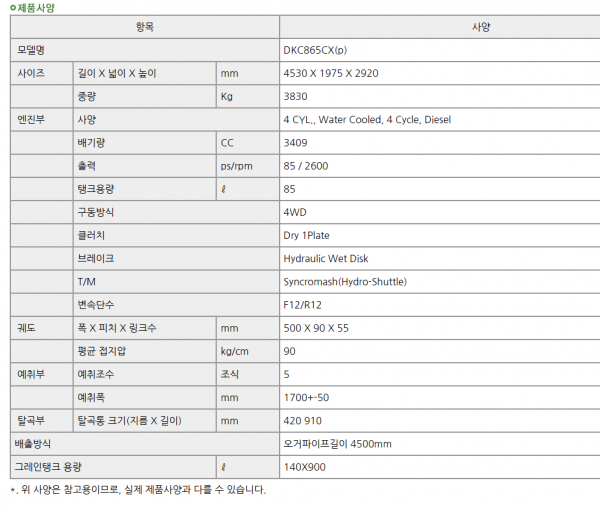 국제/콤바인/5조식/DKC865/2009년식충북 / 청주