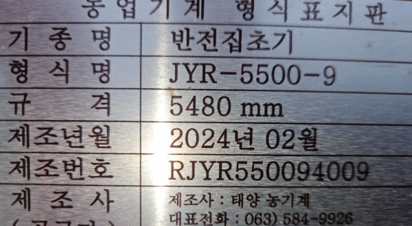 제조사 | 태양농기계 | 모델명 | JYR-5500-9 | 규격 | 규격문의 |
