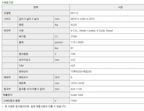 구보다/콤바인/6조식/ER112/2014년식전남 / 강진