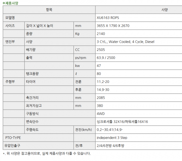 | 제조사 | LS | 모델명 | XU6163 | 규격 | 63.9마력 |