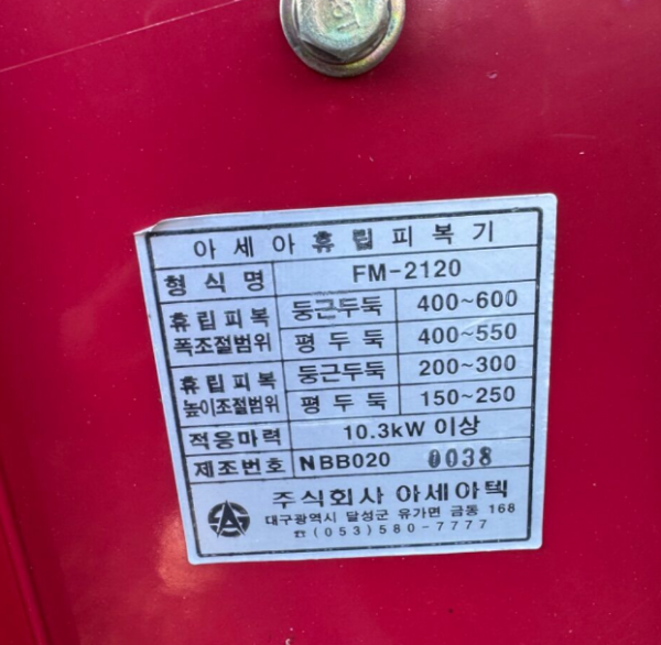 아세아/아세아 휴립피복기/규격문의/FM-2120/2020년식경북 / 영주