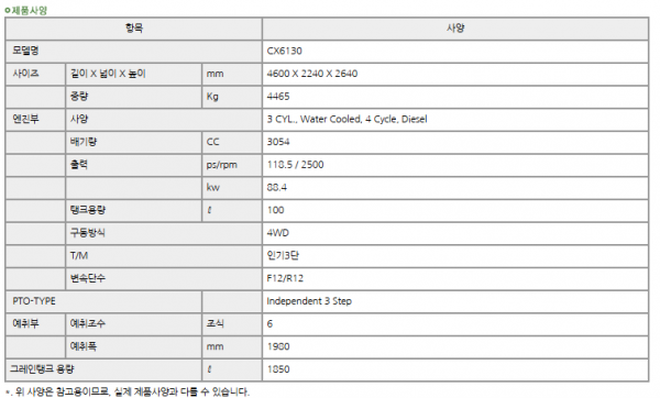 | 제조사 | 동양 | 모델명 | CX6130 | 규격 | 6조식 (산물형) |