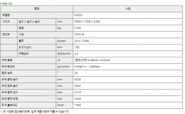 | 제조사 | 얀마 | 모델명 | VIO20 | 규격 | 모델명선택 |