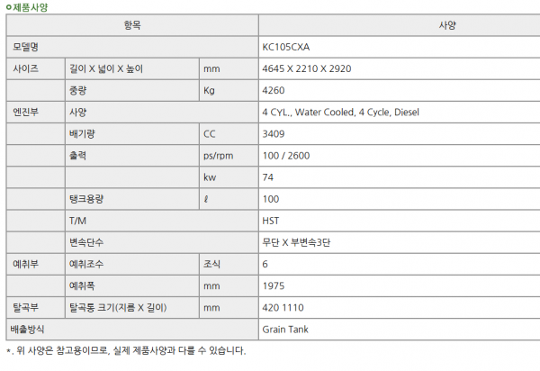 국제/콤바인/6조식/KC105/2017년식경북 / 김천