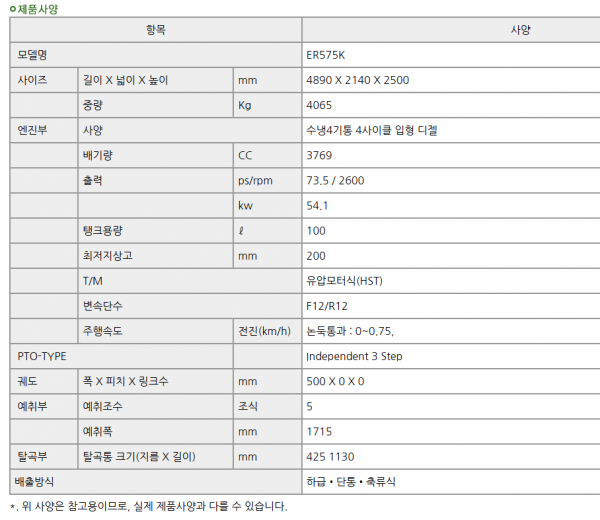 | 제조사 | 구보다 | 모델명 | ER575K | 규격 | 5조식 |