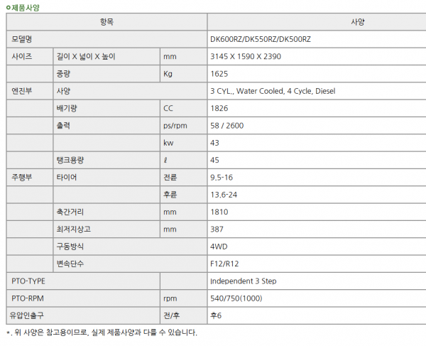 | 제조사 | 대동 | 모델명 | DK500 | 규격 | 50마력 |