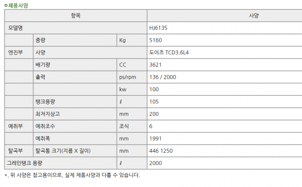 | 제조사 | TYM | 모델명 | HJ6135 | 규격 | 6조식 |