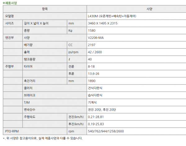| 제조사 | 구보다 | 모델명 | ㅍ | 규격 | 43마력 |