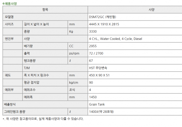 | 제조사 | 대동 | 모델명 | DSM72 | 규격 | 4조식 |