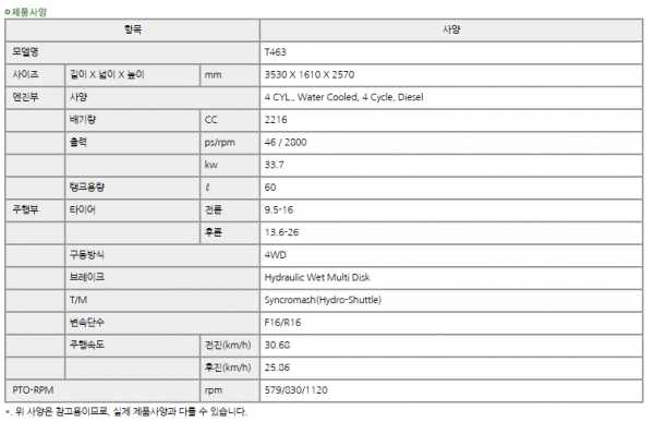 | 제조사 | 동양 | 모델명 | T463 | 규격 | 40-49hp |